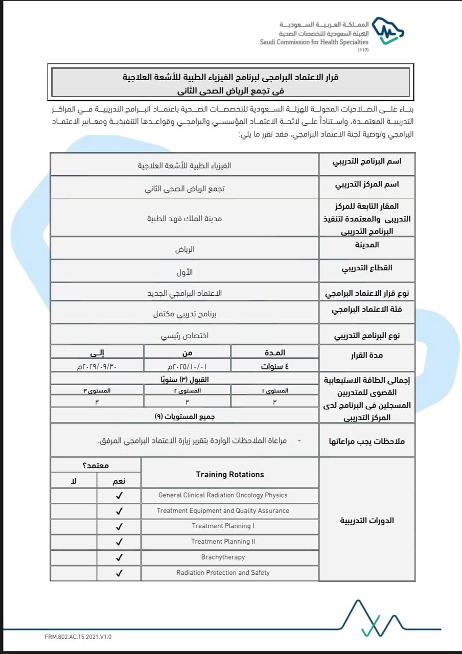 October 12, 2025 Riyadh Health Cluster 2 Begins Training Programs for 420 Male and Female Trainees in Postgraduate Programs Accredited by the Saudi Commission for Health Specialties The Executive Administration for Academic Affairs and Training at Riyadh Health Cluster 2 held an orientation program for newly enrolled trainees in the Saudi Commission for Health Specialties-accredited programs at the training center within Riyadh Health Cluster 2. This year's program targeted 420 male and female trainees enrolled in residency and diploma programs across various health specialties. The program was attended by the cluster's leadership and a number of training faculty members, and was held in the main hall at King Fahd Medical City. The program aims to facilitate the trainees' integration into the work and training environment within the cluster's facilities, familiarize them with training policies and regulations, and introduce them to the available academic and administrative support mechanisms. It also provided an overview of quality and safety programs, digital transformation initiatives, and the educational and training services offered by the Executive Administration for Academic Affairs. This initiative is part of Riyadh Health Cluster 2's efforts to support and qualify national cadres according to the professional accreditation standards approved by the Saudi Commission for Health Specialties, and to enhance the clinical training environment in 47 specialized programs, including residency and diploma programs in the hospitals and centers affiliated with the cluster. Riyadh Health Cluster 2 places special emphasis on empowering trainees and developing their academic and professional skills, thereby contributing to improving the quality of healthcare services provided and achieving the objectives of the Health Sector Transformation Program and Saudi Vision 2030, through investing in human capital and enhancing the outcomes of health training.